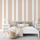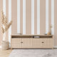 Dit ontwerp heeft een modern gestreept geometrisch motief met pastel geroosterde amandelbeige en wit gekleurde verticale strepen. Het patroon is zowel simpel als elegant, en straalt een klassieke en chique essentie uit. Het is een verfijnd ontwerp dat eclectisch minimalisme vertegenwoordigt, ideaal voor artistieke interieurontwerpers, liefhebbers van woondecors, trendsetters en liefhebbers van , retro of abstracte digitale geometrische patronen. Dit maar trendy hipsterpatroon is veelzijdig en wordt aangeboden op een scala aan eigentijdse decorproducten, geschikt voor het verbeteren van de sfeer van verschillende ruimtes zoals master- of gastenkamers, keukens, woonkamers, kinderdagverblijven, kinder speelplaatsen, universiteitsslaapzalen, condominiums, studio's of appartementen.