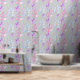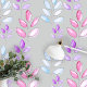 Dit behang heeft een botanisch patroon, met gestileerde handbeschilderde waterverf bladeren in verticale formaties. De zachte grijze achtergrond zorgt voor een neutrale basis, waardoor de levendige roze en gedempte lavendelbladeren opvallen. De langwerpige, traanvormige creëer heeft een organisch gevoel, terwijl de consistente herhaling van het patroon een visuele interesse toevoegt. Over het algemeen vindt dit moderne ontwerp een evenwicht tussen grillen en verfijning, waardoor het een aantrekkelijke keuze is voor interieurruimten.