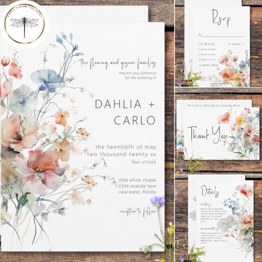 Pastel Loose Wildflowers Modern WeddingOntworpen door Kathe Santillo