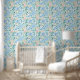 Wallpaper featuring a printed watercolor style floral pattern with larger pink and blue blooms and fresh green foliage on an airy blue ground. Peel and stick for easy install and clean removal. Apartment rental friendly for temporary updates, accent walls, seasonal refreshes, and quick makeovers. A pretty grandmillennial wall treatment for bedrooms, powder rooms, and dining rooms. Suitable for permanent or temporary use.