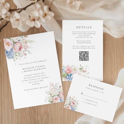 Pink & Blue Pastel Flowers Spring WeddingOntworpen door Modupe Yalley