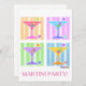 Vier Fun, kleurrijke Pop Art Martinis uitgerust met regenboogvernis-olijfvernis tegen een retro, vijftig kunststijlpastel in een klassieke pop art quad. Profiteer van de aanpassingsfuncties om uw aankoop aan te passen met tekst of foto's van uw eigen stijl!
