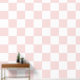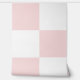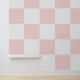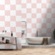 Geruite behang in pastelroze en witte kleur. Moderne minimalistische geometrische vierkante patroonschil en stokbehang.