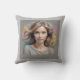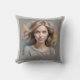 Dit werpkussen heeft een pastelschets van een vrouw met een grijze achtergrond. De achtergrond van het kussen rond de schets is een zilveren kleur. De schets is gemaakt met generatieve kunst. Het afbeelding is een pastelschets afbeelding en de kunststijl is moderne schetskunst. Het kussen is een werpkussen.