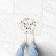 Een grillige en elegante deurmat met waterverf pastelbloemen en moderne kalligrafie, "Welkom bij ons thuis."