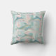 This ocean themed throw pillow features Dolphins swimming on a pastel stripe background.