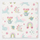 Add a touch of softness and tranquility to your child's space! This design features a serene white background adorned with light blue and pink unicorn illustrations, along with gentle rainbows, spring flowers, and bright crescent moons.