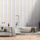 Verlicht met dit frisse en luchtige pastelbehang. Het papier, voorzien van verticale strepen in ijskleuren, is een frisse wind voor elke ruimte. Breng een kalmerende en grillige uitstraling naar de kinderkamer of speelkamer; geniet van de eenvoudige charme van ligstoelstrepen in het zomerhuis of de strandhut; of creëer een verfrissende, aan zee geïnspireerde doucheruimte.