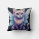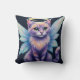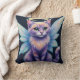 This throw pillow features an adorable pastel fairy cat with glowing halo and iridescent wings, whimsical fantasy art of a wide-eyed angelic kitten - perfect for magical décor.