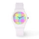 Dit heldere, kleurrijke ontwerp heeft een licht getextureerd herhalend gecontroleerd/vierkant patroon in een levendige regenboog van pastelkleuren. Het is een stijlvol, levendig, schuimvormend schaakbord dat eruit ziet als springtijd. Geniet ervan als zodanig of gebruik het als achtergrond voor jouw tekst of foto. De horlogeaantallen zijn wit met een zwart overzicht.