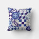 patchwork-achtergrond met traditioneel blauw kussen