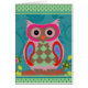 Meerkleurige, schattige vlekwerk van polka stond op een bloeiende boomtak met een blauwe achtergrond en groene puntgrenzen van de polka.
