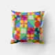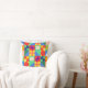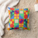 Dit gooi kussen heeft een Bauhaus ontwerp van vierkanten met vreemde vormen binnen, herhaald over het ontwerp.