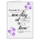Herinnert iemand die kanker bestrijdt om op dit moment door dit moeilijke proces te blijven met dit kalligrafietypografische ontwerp met de boodschap: "Vergeet niet om dit één dag per keer onder ogen te zien." Het ontwerp wordt geaccentueerd door prachtige lavenderbloemen in de linker bovenhoek van de kaart.