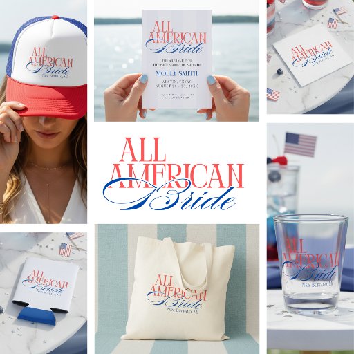Celebrate the bride with stars, stripes, and sunshine using this Patriotic All American Bride Bachelorette Design! Featuring bold modern typography. Perfect for a festive and laid-back bachelorette weekend—whether you're boating, bonfiring, or just soaking up that Americana charm.