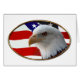 Wenskaart met een patriottische foto van een kale adelaar tegen de Amerikaanse vlag. Gemaakt in een goudkleurig ovaal lijst. Geweldig uitziende patriottische kaart voor iedereen, vooral voor uw Veteranen of militairen.