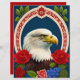 Het afbeelding van een kale adelaar, dat de belangrijkste kenmerken van de vogel weergeeft, met een extra artistieke aanraking van klassieke rode, witte en blauwe bloemelementen. De bloemelementen zijn ontworpen met behulp van geavanceerde technologie en omvatten rozen, bladeren en bloemen.