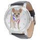 Laat deze schattige kleine all-amerikaanse patriottische Chihuahua hond met je meegaan, waar je ook gaat met dit hondenliefhebbers polshorloge.