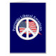 Deze winkelier is vastbesloten om elke Amerikaan eraan te herinneren dat de liberalen zo zoals iedereen enkel patriottisch zijn, als ik het woord moet worden uit één t-shirt, knoop, of kaart tegelijkertijd. Bent u geen vermoeid ziek en van rechtse radio en GOP carrièrepolitici implicerend dat slechts de republikeinen begrijpen wat het betekent om van de Verenigde Staten te houden? Dat vrijheid en patriottisme zijn bakens van hun partij? Dat de Amerikaanse vlag op de een of andere manier het symbool van de republikeinse partij is? Genoeg reeds. Draag dit vredesteken en Amerikaanse vlag trots, mijn liberale vrienden. En ja, zegent de God de V.S. Zo daar!