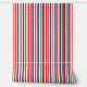 Dit kunstwerk heeft een gedurfd en rechttoe rechtaan patroon van verticale strepen in een klassiek rood, wit en blauw kleurenschema. De strepen zijn gelijkmatig verdeeld en wisselen elkaar af in dikte, waardoor een ritmisch en visueel opvallend ontwerp ontstaat. De strakke, lineaire indeling van de kleuren geeft het stuk een gevoel van orde en eenvoud, terwijl het gebruik van patriottische tinten een gevoel van nationale trots en traditie oproept. De herhaling en balans in het patroon dragen bij aan de sterke, geometrische esthetiek.