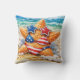 Een wonderlijke zeester in een rood, wit en blauw Amerikaanse vlag bikini ligt lui op een zandstrand, met ster-vormige zonnebril die zijn speelse uitstraling versterkt