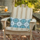 patroon, abstracte bloemen, blauwgroen, wit buitenkussen