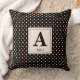Dit Halloween home decor kussen heeft een patroon van schattige witte en Oranje polka met een zwarte achtergrond kleur. kan worden aangepast voor alle foto's en monogrammen.