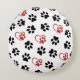 Patroon van poten, zwarte poten, rode poten, harte rond kussen