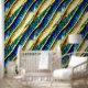 Pāua zeeschelp geïnspireerd behang kan direct een kamer transformeren. Deze levendige en gedurfde zeeoorschelp geïnspireerd turkoois; donkerblauw en goud diagonaal streep naadloos patroonontwerp is ideaal voor strandthema of nautische omgevingen en is geschikt voor zowel huis als kantoor omgevingen.