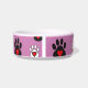 Je geliefde huisdier eet in stijl met deze kleurrijke roze kom met zwarte en witte poten met hartjes! Personaliseer het door de naam van uw huisdier toe te voegen!