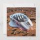Een futuristisch, computermuisvormig ruimtevaartuig rust op het rode, stoffige oppervlak van Mars. Het muisachtige vaartuig is wit, gestroomlijnd en lijkt op een miniatuur spaceshuttle. Kleine vleugeltjes zijn aan de zijkanten geplaatst, rode indicatielampjes schijnen eronder en bovenop zorgt een doorzichtige koepel voor een duidelijk uitzicht van de lege pilotenstoel – wat aangeeft dat de crew al is ontscheept. Het vaartuig is succesvol geland - dit is de historische eerste missie op Mars. Op de achtergrond staan verschillende astronauten op het rode, rotsachtige terrein. In hun witte ruimtepakken observeren ze het ruimtevaartuig in stilte. Hun houding is kalm en contemplatief, alsof ze zich concentreren op het moment dat het begin markeert van een nieuw tijdperk van ontdekking. De scène ontvouwt zich in Marsdaglicht: rood rotsachtig terrein, zachte schaduwen en een vredige, hightech sfeer domineren het afbeelding. AI-gegenereerde elementen.