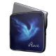Een vreedzaam afbeelding van een abstracte vredesduif om uw laptop te bedekken en te beschermen. De achtergrond is in tinten blauw met de duif geschilderd in lichtere tinten blauw en wit. Dit is een digitaal schilderij van een foto van een natuurlijke wolkenvorming.