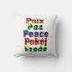 Hou je van kleurrijke kussens? Dit werpkussen zegt rust in talen als Frans, Spaans, Pools en Nederlands met regenboogharten.
