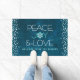 Peace Joy Love Blue Holiday Bold Modern Snowflake Deurmat
