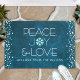 "Vrede, vreugde en liefde." Een leuke, speelse, lichte turquoise en een witte sneeuwvlokillustratie en moderne, sans serif typografie op een rijke, blauwgroen turquoise blauwe marmerachtergrond helpen je om mee te doen in het vakantieseizoen. Witte en lichte turquoise confetti stippen aan de zijkanten maken het uiterlijk compleet. Verbeter uw ingang met deze stijlvolle en unieke op maat gemaakte naam Kerstmis of Hanukkah welkome mat. Personaliseer met jouw naam, ander bericht, of verlaat leeg. De kaarten van de gelijke, enveloppen, stickers, canvas tassen, het verpakken van papier, dienende dienbladen, huisdecor, en meer zijn ook beschikbaar. Wat een vermakelijke manier om dit feestelijke seizoen te vieren en iedereen die je binnenkomt welkom te heten! Gebruikend de makkelijk te gebruiken sjabloon, typ in uw familienaam, ander exemplaar, of verlaat leeg, en u kunt dit vakantiemodel moeiteloos personaliseren. Stuur me alstublieft alle vragen of verzoeken.