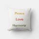 Rood groen en goud. Het gezegde is Peace Love Harmony. Dit is een mooi gezegde voor een seizoen of elk moment van het jaar. Vet helder en minimalistisch.