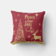 Een prachtig kerstSierkussen met een mooie faux Gold Glitter-kerstboom met sneeuwvlokken en een rendier op een rode achtergrond en een Gold Glitter-script met "Peace Love and Joy". Op de rug kunt u het met uw eigen naam van de Familie van het Persoonlijke menu personaliseren of het schrappen.