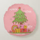 Breng gezellige vakantievibes naar uw ruimte met deze Peace, Love & Joy aangepaste naam rond kussen, met een charmante retro kerstboom op een zachte roze achtergrond. Perfect voor een feestelijk interieur of als een gepersonaliseerd vakantiegeschenk!