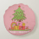 Peace, Love & Joy Retro Kerstboom Roze Rond Kussen