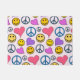 Vrede, liefde, Laugh, glimlach, live, patroon. Met roze en paarse harten, gele glimlachende en gelukkige gezichten, en blauw vredestroepen met een lichte achtergrond van het roos. Je helpt je te blijven vrolijk, gemotiveerd, aanmoediging, inspiratie, om een geweldige dag te hebben. Omring jezelf met positiviteit. Geweldig voor kinderen, meisjes, beste vrienden, vrouw, vriendin, zussen, tante, grootmoeders, moeders, kinderen en nog veel meer.