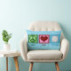 Een vredesteken, hart en een schattig volleybal op een douane gooien kussen. volleybalteam kamer decor.