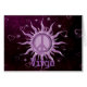 De zon en het symbool voor vrede vieren je geboortemaand in lavender, lila en paars met sterren.