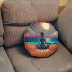 Yoga Fitness Studio / Meditation Instructor / Personal Trainer / Life Coach / Healer / Reiki Master / Massage Therapy Round Pillow. Vreedzame vrouw die Silhouette 's nachts onder de Fantasy Moonlight Sky aan de kust van de Calm Ocean bespioneert.