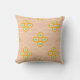 Hexagonal floral pattern with blue-green centers and orange outlines on a peach background. White lines connect the shapes, creating a geometric grid.