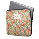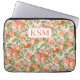 Dit patroon toont waterverf portretten van perziken en roze bloemen.