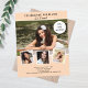 Creëer uw eigen unieke fotocollage. Gebruik vier, vier van je favoriete foto's. Personaliseer en voeg een naam en feestdetails toe. Perzikkleurige achtergrond, zwarte tekst. 1 vel = 1 uitnodiging afgedrukt rand tot rand.