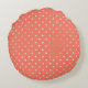 Een perzik- en goudpolka-stip-monogram-ronde werpen een kussen met een vrouwelijke florale kreet. Pas dit girale lente-ontwerp aan door jouw naam en monogrammed initiaal toe te voegen. Dit is een vlak gedrukt afbeelding. De polka stippen zijn goudkleurig, NIET metallisch.