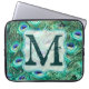 Peacock Bird Feather Blauwgroen Monogram 15-inch H Laptop Sleeve