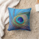 Peacock-doezelaar op blauw ongevallenventilator kussen