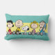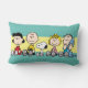 Kijk Lucy, Charlie Brown, Snoopy, Sally en Linus zitten samen in een rij.